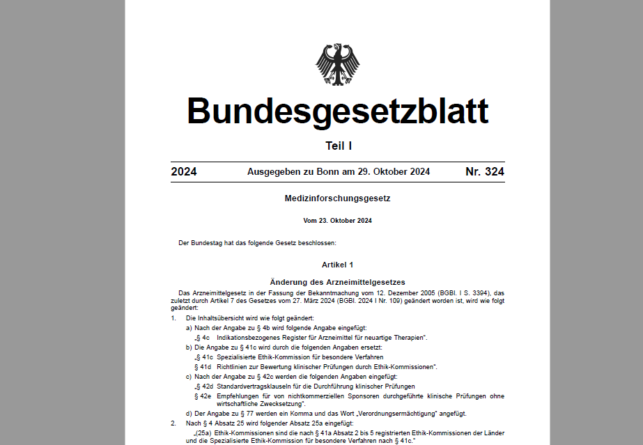 Sie finden das Medizinforschungsgesetz auch im Bundesgesetzblatt 2024 Nr. 324.[